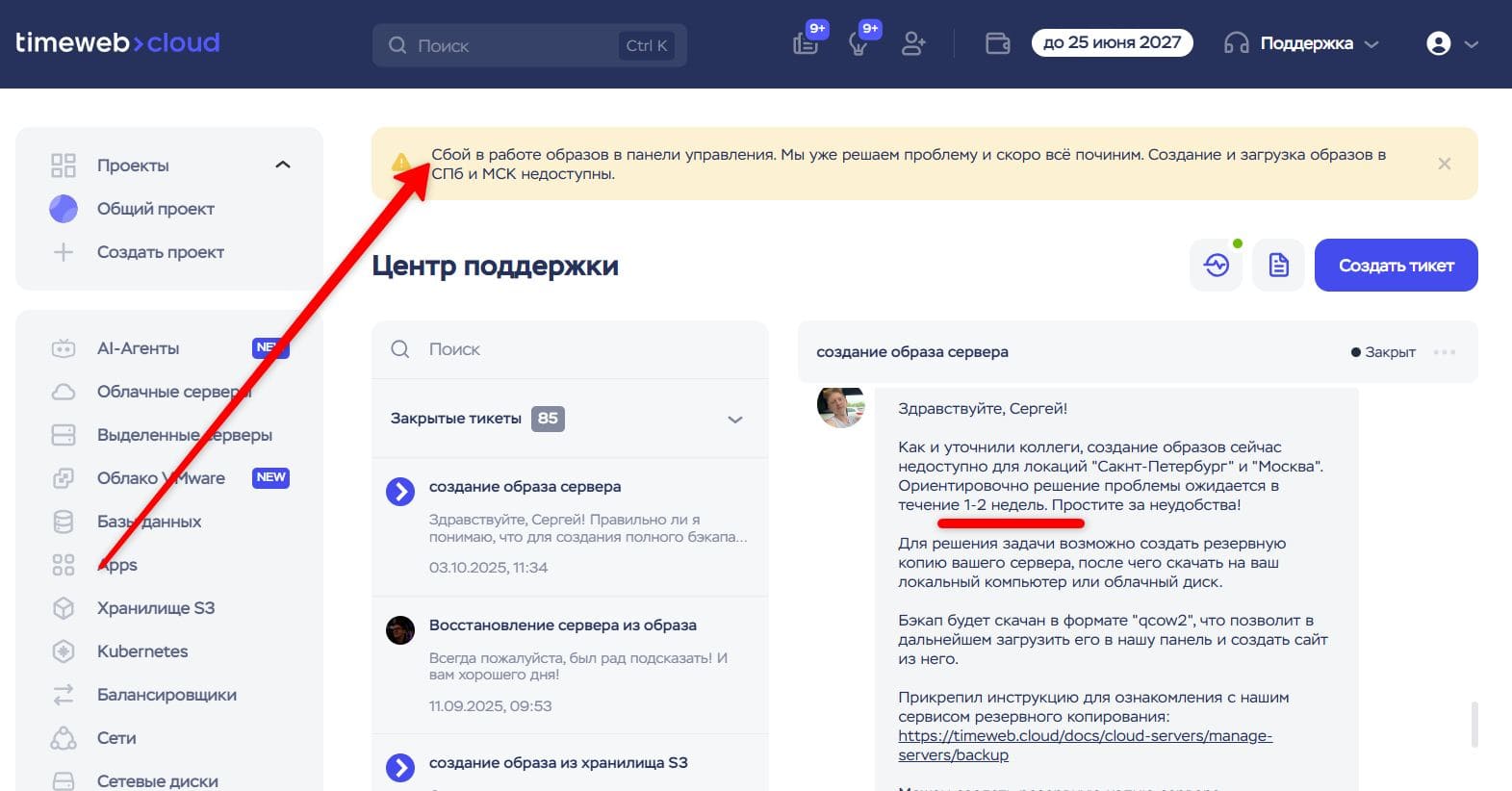К слову, на Таймвебе недавно произошел сбой резервного копирования: образы не создаются.