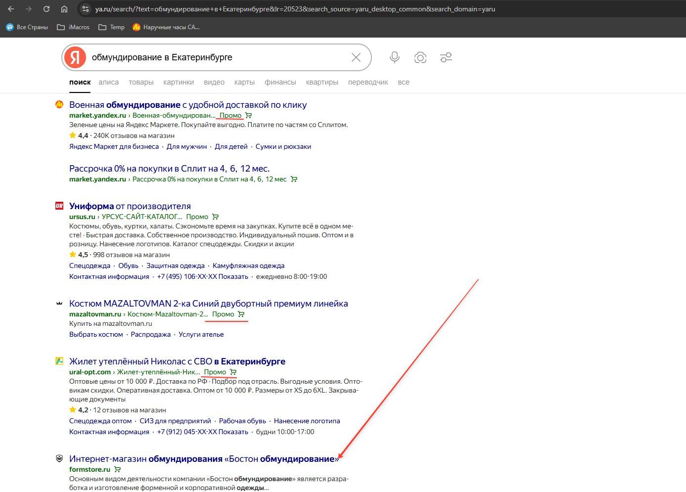 P.S. Спустя месяц выяснилось, что сайт по запросу "Обмундирование в Екатеринбурге" на первом месте в органической выдаче (см. рис. 5 ниже) и ИКС увеличился на 50 пунктов (см. рис. 6 ниже).