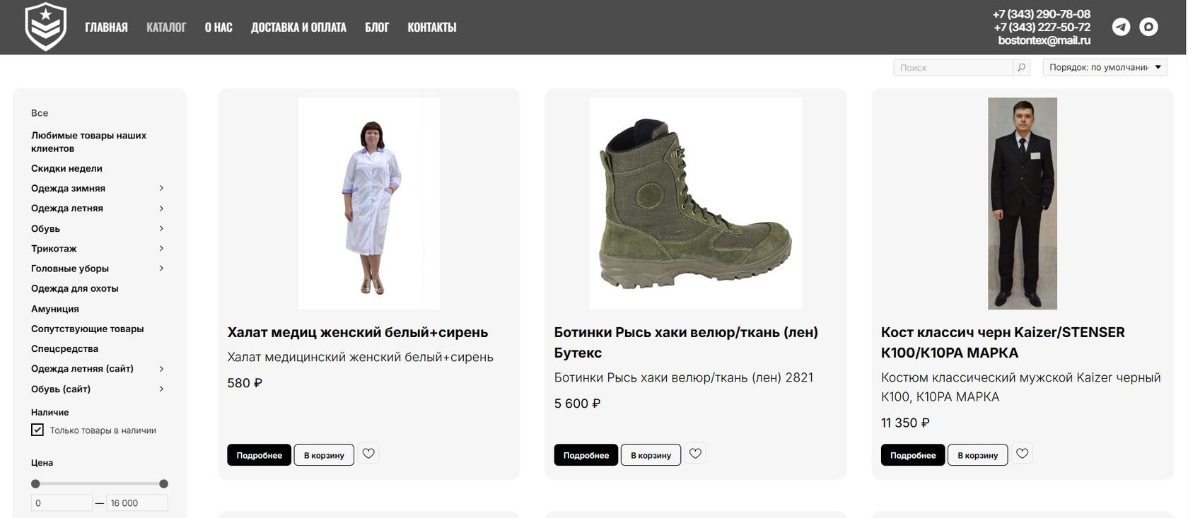 Ко мне обратился владелец интернет-магазина «Бостон обмундирование». Исходная ситуация была критической: старый сайт на Bitrix перестал работать. Анализ показал, что восстановить его невозможно — устаревший движок и уязвимости в шаблоне Аспро, которые годами не обновлялись, привели к фатальному сбою. Резервных копий не было, хостинг развел руками.