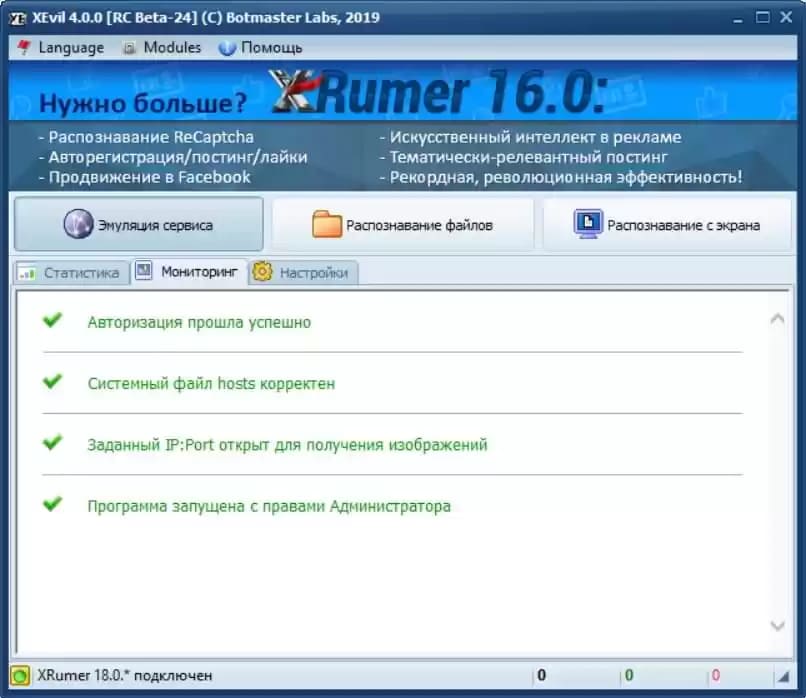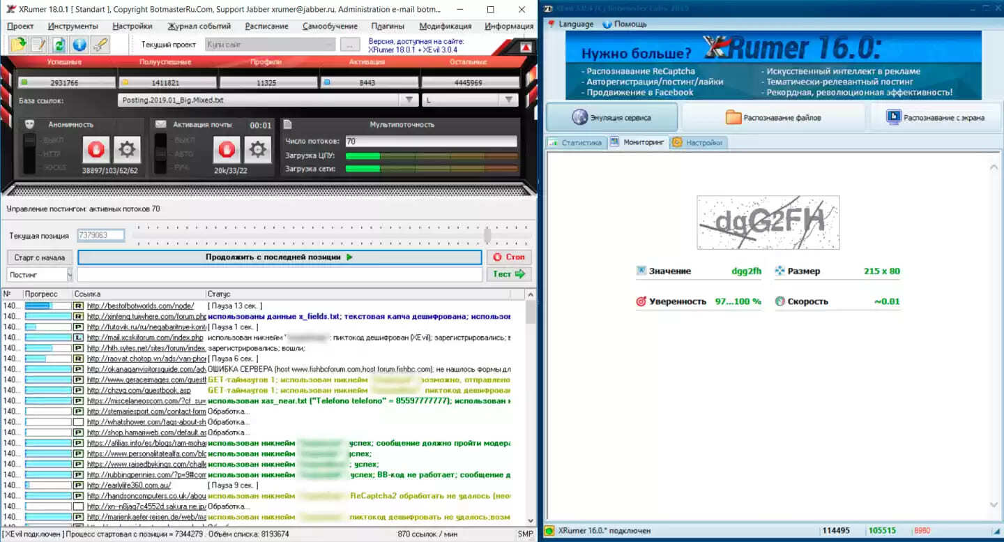 Рассылки – муторное дело, отнимает море нервов и времени. Практически везде есть защита от роботов – капча. Хрумер способен распознавать её при помощи программы XEvil, которая предоставляется при покупке комплекса XRumer. Программа работает в связке с Хрумером, периодически обновляется, и список обходов защиты растёт.